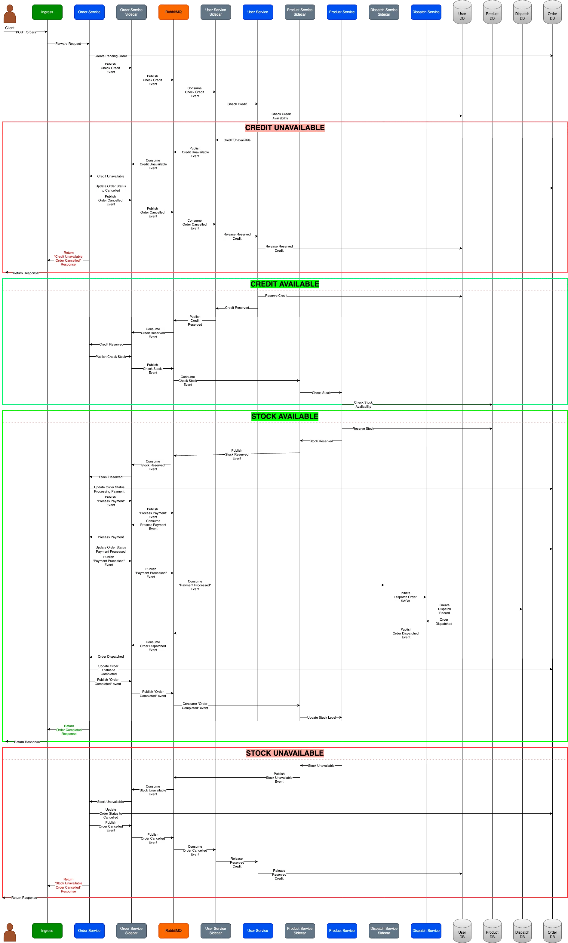 - Order Service, Ingress’e “Credit Unavailable - Order Cancelled” (Kredi Yetersiz - Sipariş İptal Edildi) yanıtını döndürür.